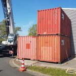 Das Brandübungshaus stellt eine zweigeschossige Wohneinheit dar und besteht aus einem Verbund mehrerer Überseecontainer. Sie ist auf dem Gelände der Feuer- und Rettungswache am Niedersachsenring platziert.